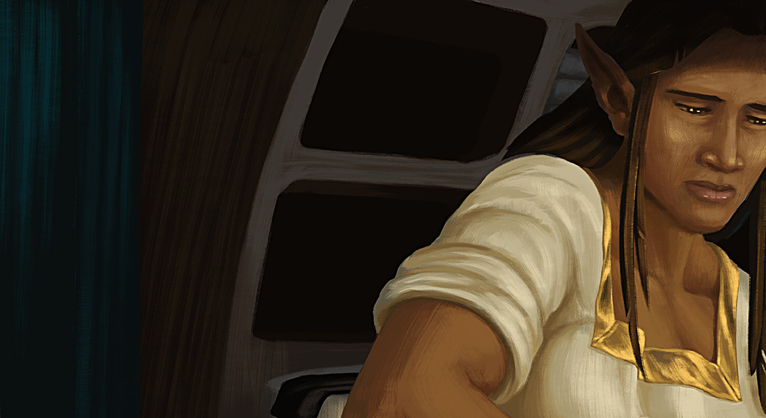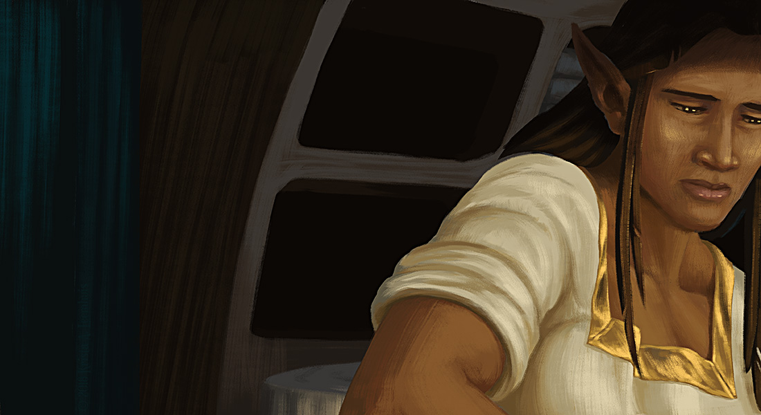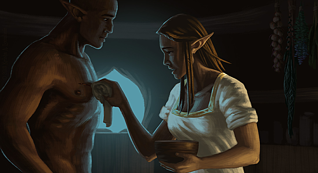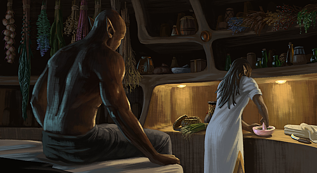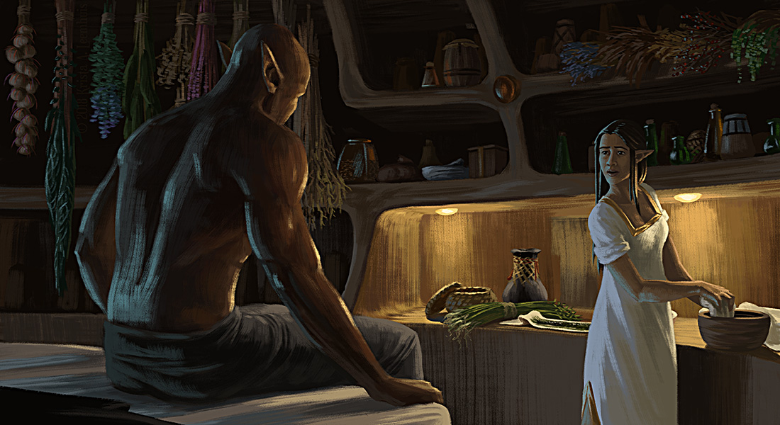Iara mixes a poultice while Shen